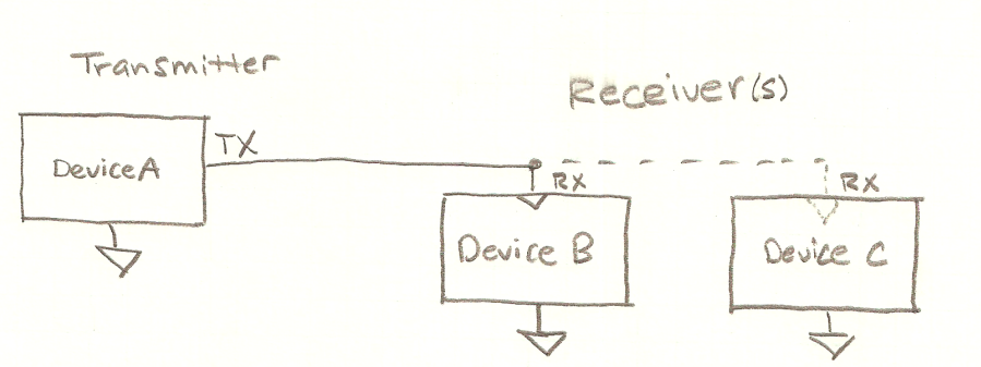In addition to not having a good method to detect errors, there is also no way to address certain bytes to a particular receiver (if there is more than one). There is also no good method of reliably “dropping in” on an ongoing transmission.